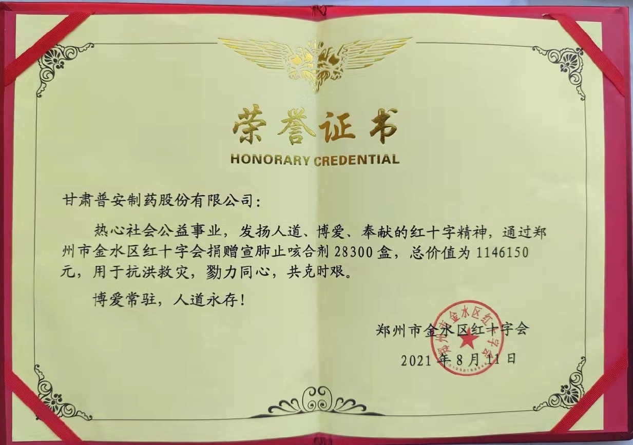 普安制藥始終不忘攜手互助,共克時艱的擔當。在鄭州面臨暴雨災情、疫情雙重挑戰(zhàn)下,普安制藥捐贈價值114.6萬元的抗疫物資用于鄭州災后防疫工作,用實際行動彰顯“一方有難,八方支援”的溫情和愛心。