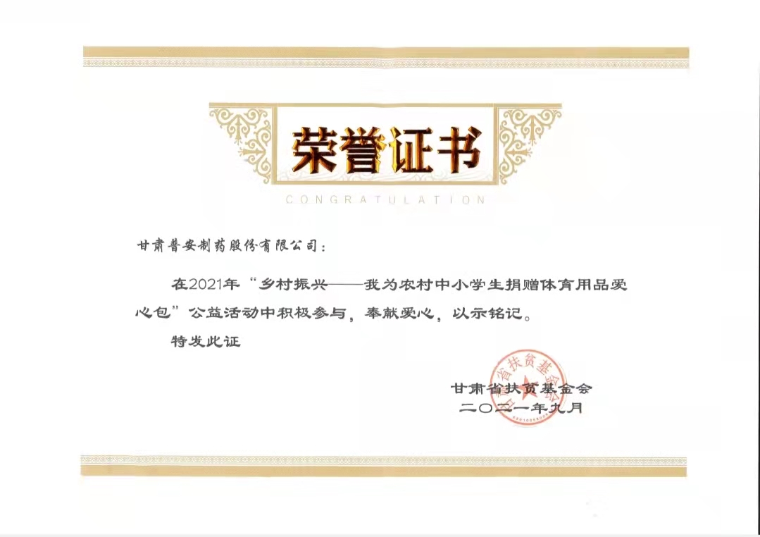 甘肅藥業(yè)集團普安制藥(以下簡稱:普安制藥)自成立以來,一直大力弘揚“普惠眾生、安康萬家”的企業(yè)理念,本著建設一流制藥企業(yè)、提供一流產(chǎn)品服務的目標,堅持黨領導企業(yè),堅持創(chuàng)新發(fā)展,穩(wěn)健經(jīng)營。在企業(yè)發(fā)展的同時更是懷有對國家、對民族、對社會的責任和擔當,將“回報于社會”作為一項重要內容。