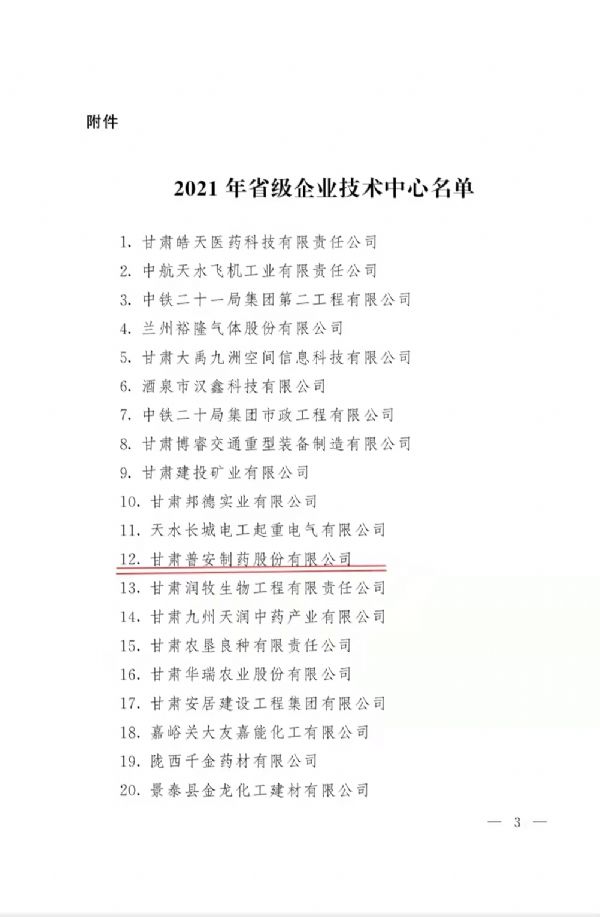 ​喜報!喜報!普安制藥通過“2021年省級企業(yè)技術中心”認定