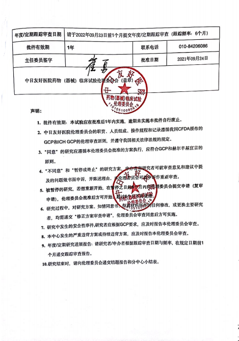 項(xiàng)目所屬的有效性RCT臨床試驗(yàn)研究于2021年9月24日通過組長單位(中日友好醫(yī)院)的倫理審查,并于9月27日取得倫理批件。其他研究中心正以組長單位倫理批件為前置條件有序完成項(xiàng)目立項(xiàng)和倫理立項(xiàng),近日已有4家分中心陸續(xù)拿到倫理批件,其中白山市中醫(yī)院率先完成兩例受試者入組,標(biāo)志著有效性RCT臨床試驗(yàn)研究項(xiàng)目病例入組工作正式開始。
