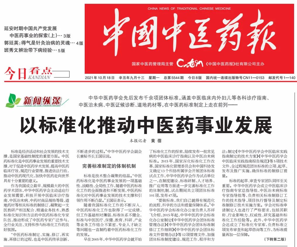 作為我國(guó)成立最早、規(guī)模最大的中醫(yī)藥學(xué)術(shù)團(tuán)體,中華中醫(yī)藥學(xué)會(huì)主動(dòng)適應(yīng)行業(yè)發(fā)展需要,積極開(kāi)展中醫(yī)臨床診療指南、中醫(yī)治未病、中藥材商品規(guī)格等級(jí)、道地藥材等相關(guān)標(biāo)準(zhǔn)的制修訂,凝聚起一支醫(yī)教研產(chǎn)相互配合、精通業(yè)務(wù)技術(shù)、熟悉標(biāo)準(zhǔn)化知識(shí)和方法的中醫(yī)藥標(biāo)準(zhǔn)化專(zhuān)家隊(duì)伍,推動(dòng)形成了中醫(yī)藥專(zhuān)家廣泛參與,全行業(yè)關(guān)注、支持和參與標(biāo)準(zhǔn)化工作的良好氛圍。