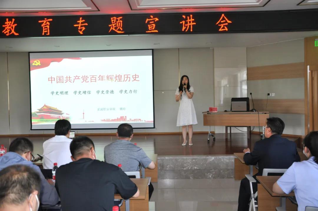 6月25日,按照武威市委統(tǒng)一安排,進(jìn)一步把黨史學(xué)習(xí)教育作為增強(qiáng)“四個(gè)意識(shí)”、堅(jiān)定“四個(gè)自信”、做到“兩個(gè)維護(hù)”的重要檢驗(yàn),甘肅普安制藥股份有限公司、甘肅省農(nóng)業(yè)工程技術(shù)研究院、甘肅農(nóng)墾藥物堿廠有限公司三個(gè)單位聯(lián)合舉辦了黨史學(xué)習(xí)教育專題宣講會(huì)。會(huì)議邀請(qǐng)武威市委宣講團(tuán)成員、武威職業(yè)學(xué)院講師魏玲作黨史學(xué)習(xí)教育專題宣講——《中國(guó)共產(chǎn)黨百年輝煌歷史》。