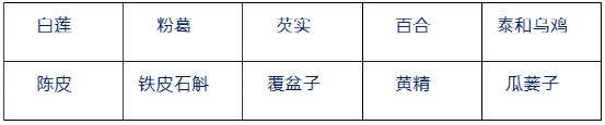 浙貝母、白術、元胡、玄參、杭白芍、杭白菊、浙麥冬、溫郁金