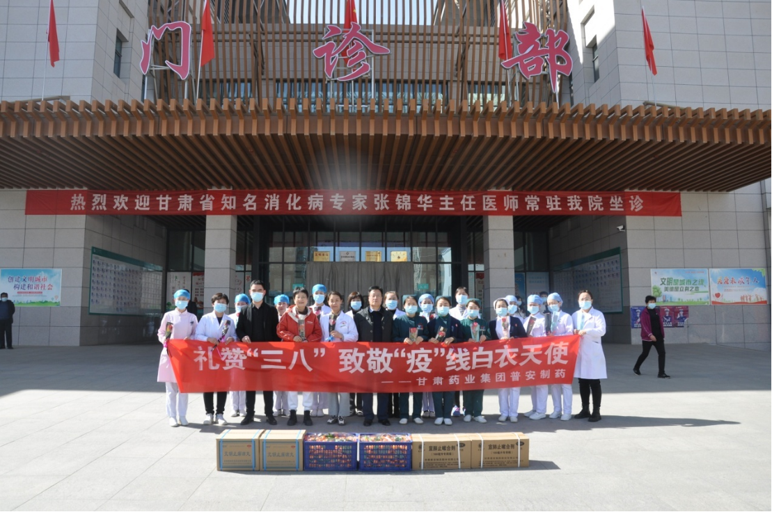3月7日下午,普安制藥一行四人前往武威市中醫(yī)院慰問奮戰(zhàn)在疫情防控“疫”線的女醫(yī)護(hù)人員,為她們獻(xiàn)上了鮮艷的玫瑰、新鮮的水果和藥品,祝奮戰(zhàn)在“疫”線以及默默奉獻(xiàn)在醫(yī)院各個(gè)工作崗位的全體女職工們“三八”節(jié)日快樂,祝愿她們永遠(yuǎn)健康美麗,幸福快樂。