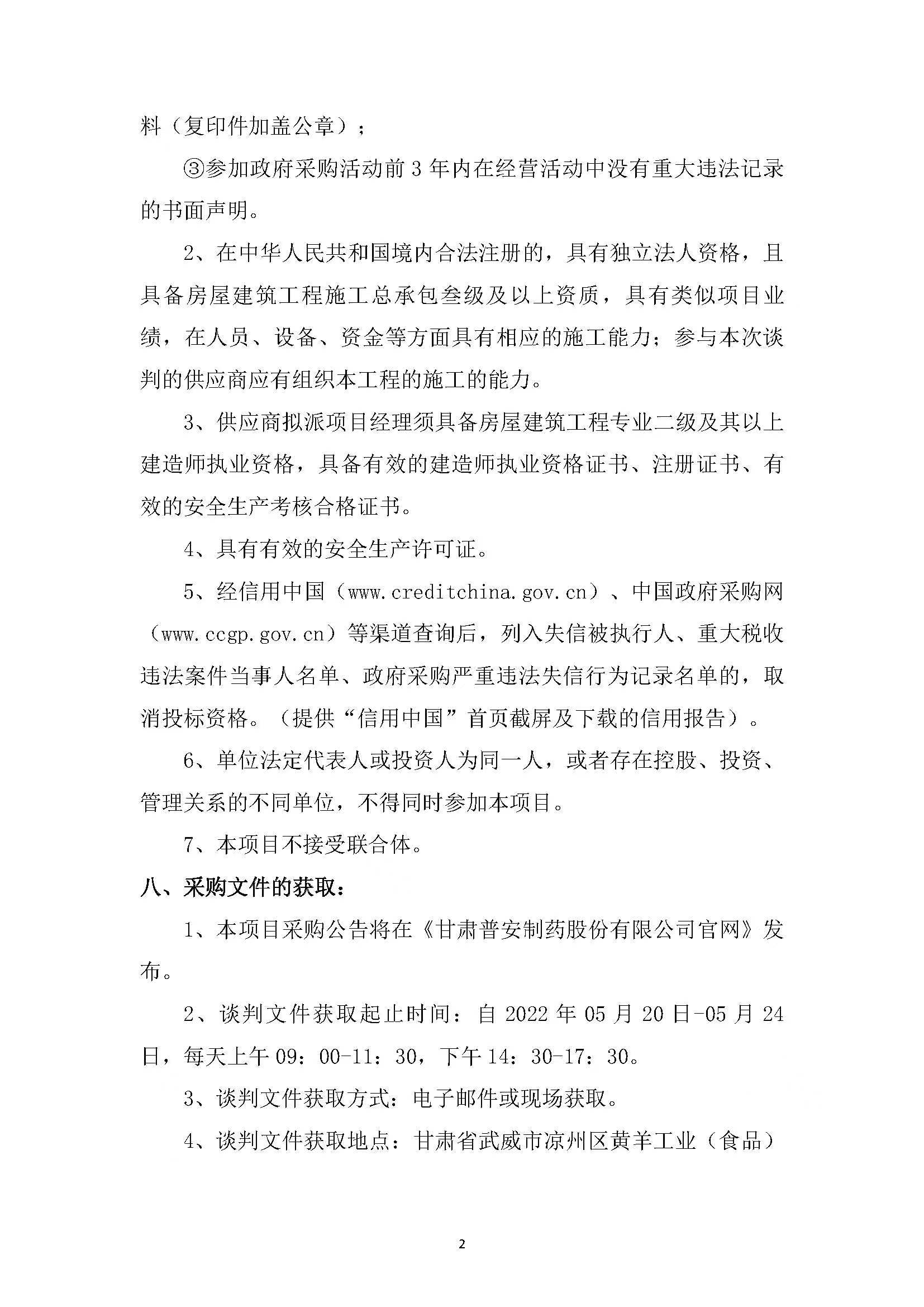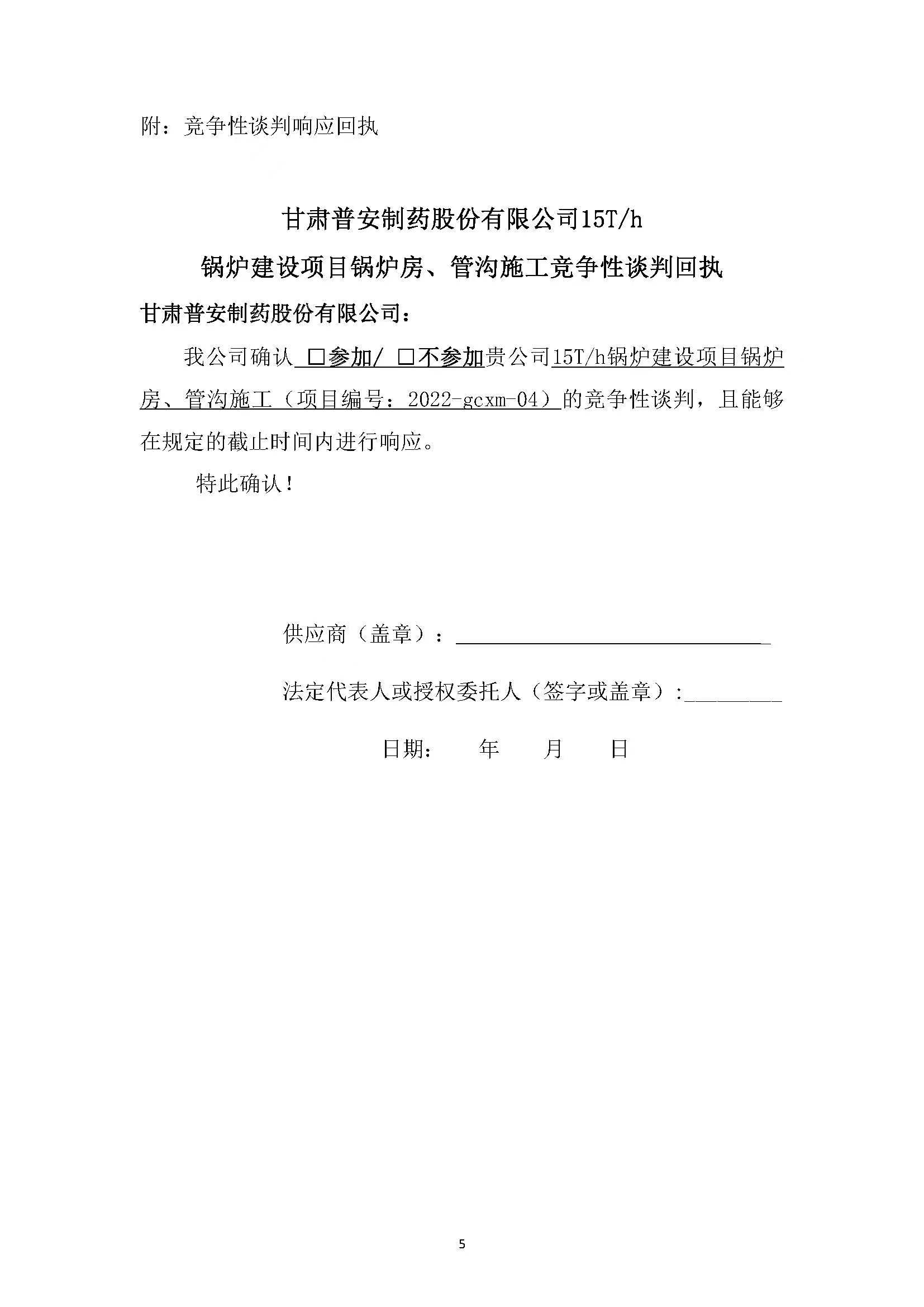 甘肅普安制藥股份有限公司15T/h鍋爐建設(shè)項(xiàng)目鍋爐房、管溝施工競(jìng)爭(zhēng)性談判公告