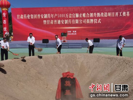 6月15日,在武威市涼州區(qū)舉行了甘肅藥業(yè)集團普安制藥年產(chǎn)5000萬盒(3億支)宣肺止嗽合劑升級改造項目開工奠基暨甘肅普迪安制藥有限公司成立揭牌儀式。