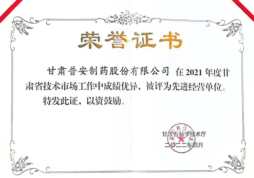 喜訊:甘肅藥業(yè)集團所屬企業(yè)普安制藥獲評“2021年度甘肅省技術(shù)市場先進經(jīng)營單位”