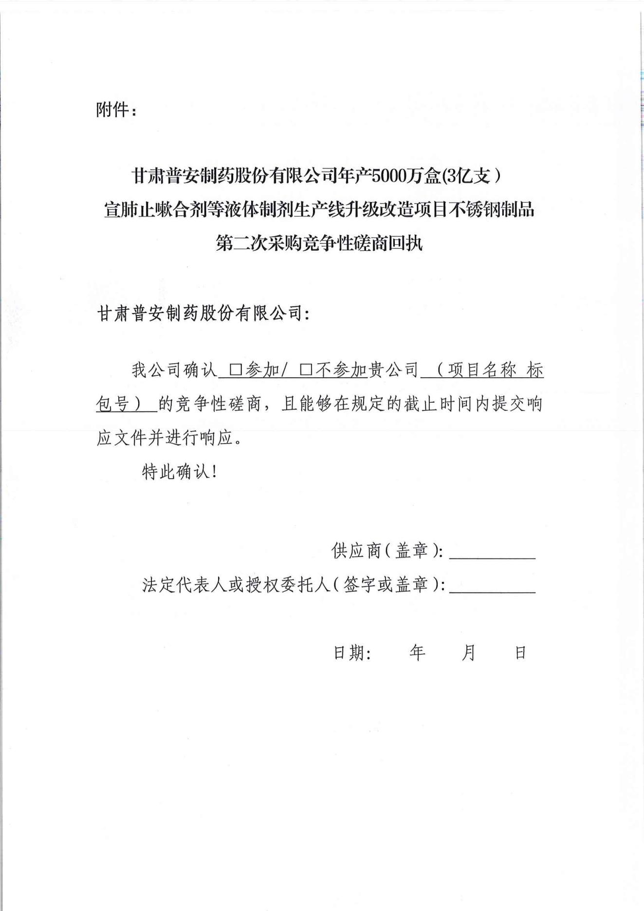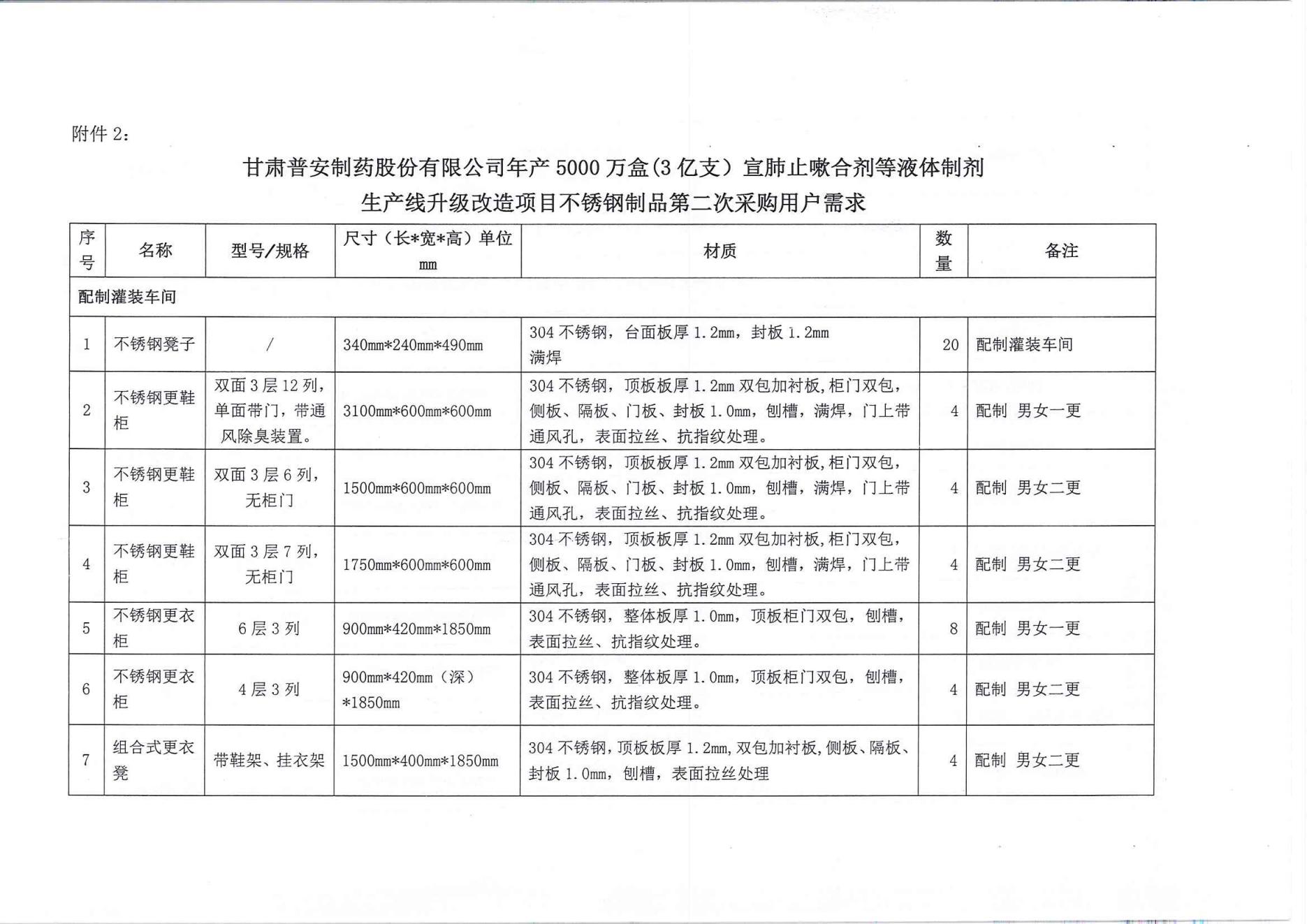 甘肅普安制藥股份有限公司年產(chǎn)5000萬(wàn)盒(3億支)宣肺止嗽合劑等液體制劑生產(chǎn)線升級(jí)改造項(xiàng)目不銹鋼制品第二次采購(gòu)競(jìng)爭(zhēng)性磋商公告