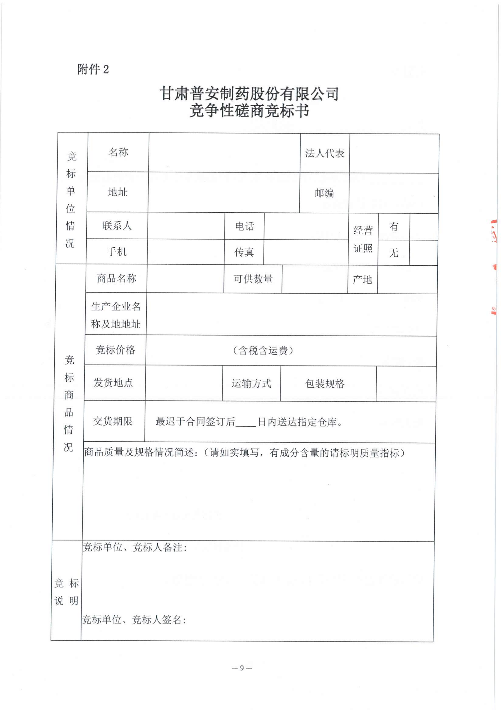 甘肅普安制藥股份有限公司2023年第二次燃煤采購競爭性磋商公告