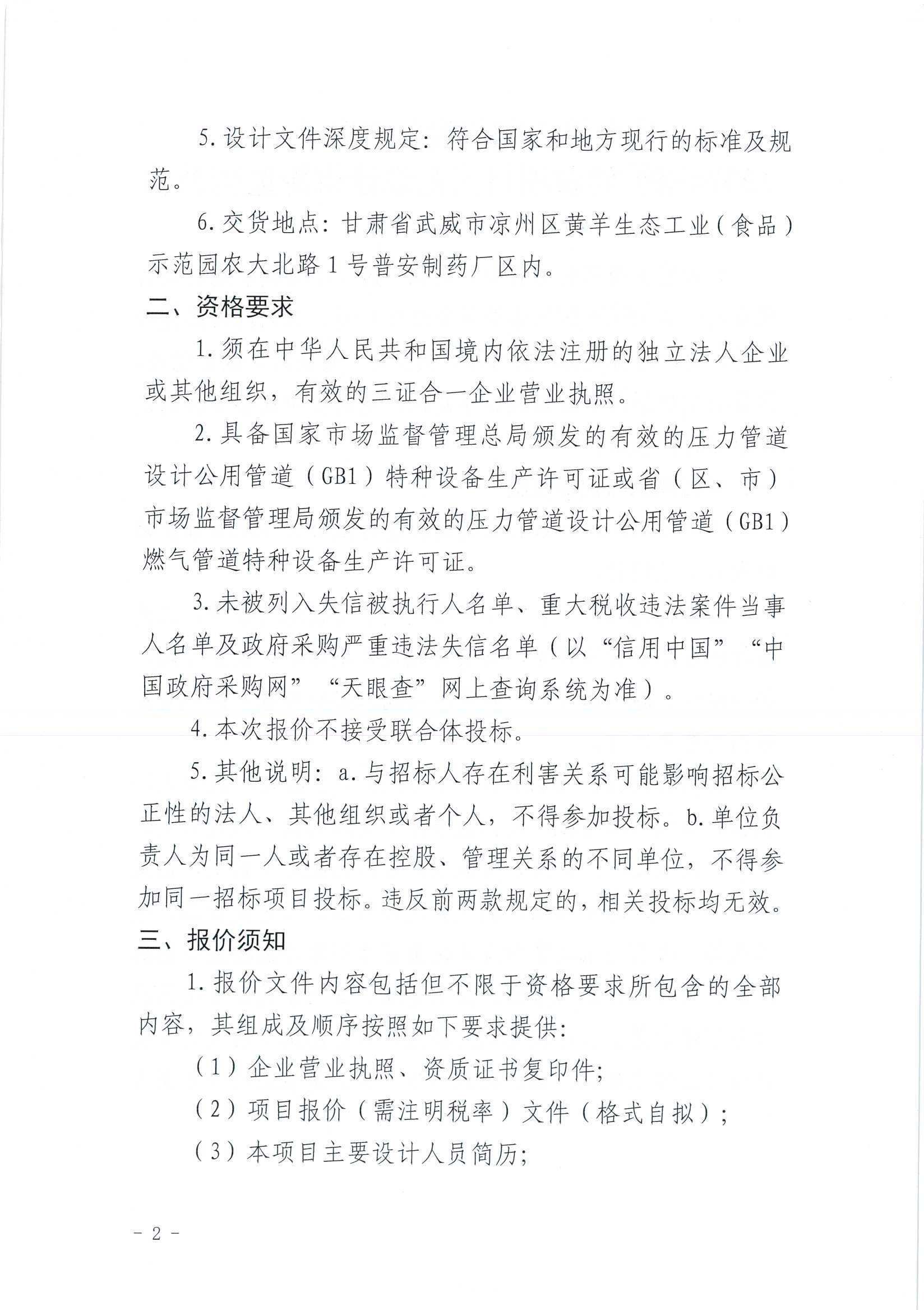 甘肅普安制藥股份有限公司15T/h鍋爐建設(shè)項目工藝設(shè)計報價邀請公告