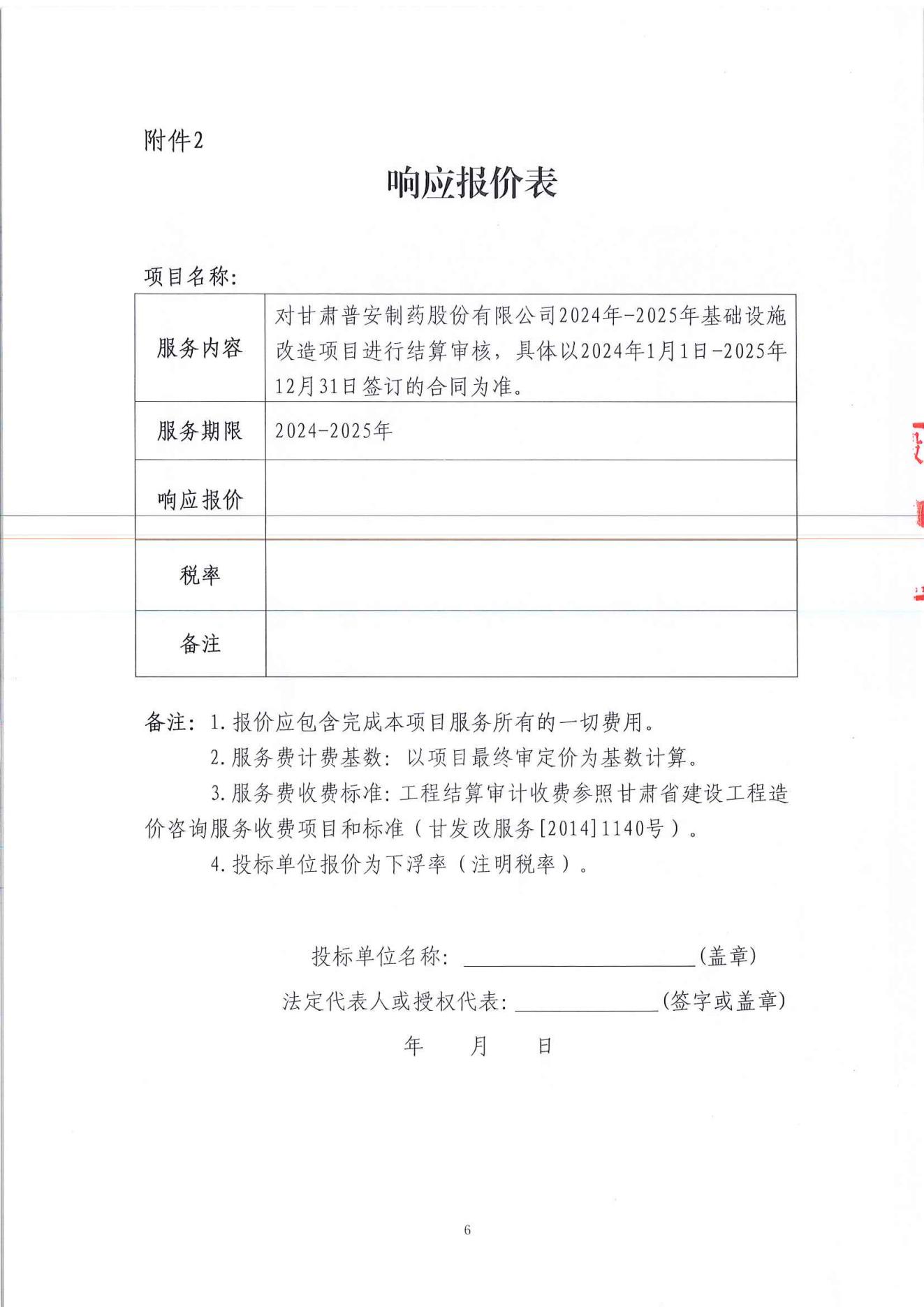 甘肅普安制藥股份有限公司2024年-2025年基礎(chǔ)設(shè)施改造項目結(jié)算審核服務(wù)招標(biāo)公告