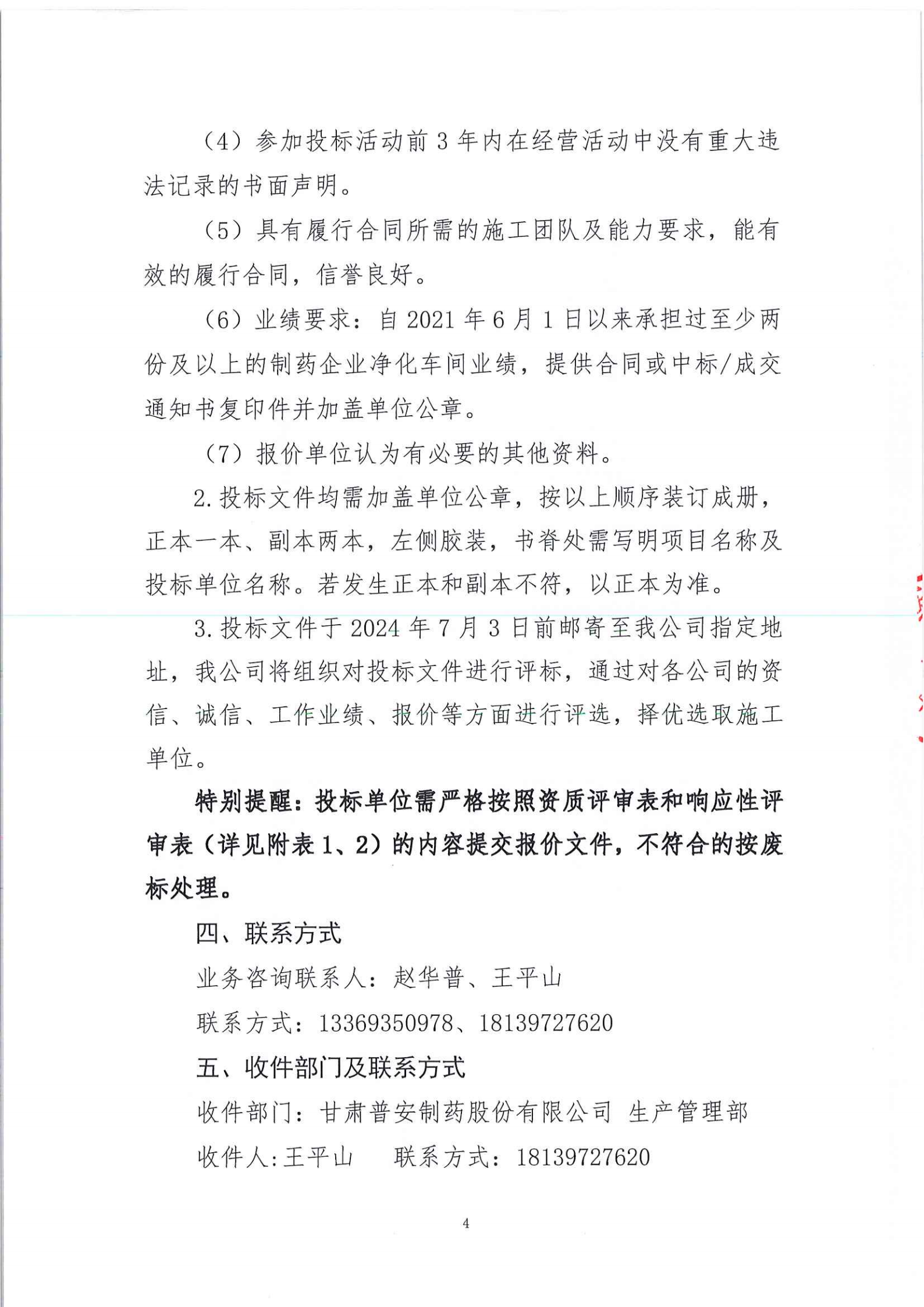 甘肅普安制藥股份有限公司2024年基礎(chǔ)設(shè)施改造項目-提取車間部分彩鋼廠房改造施工招標(biāo)公告