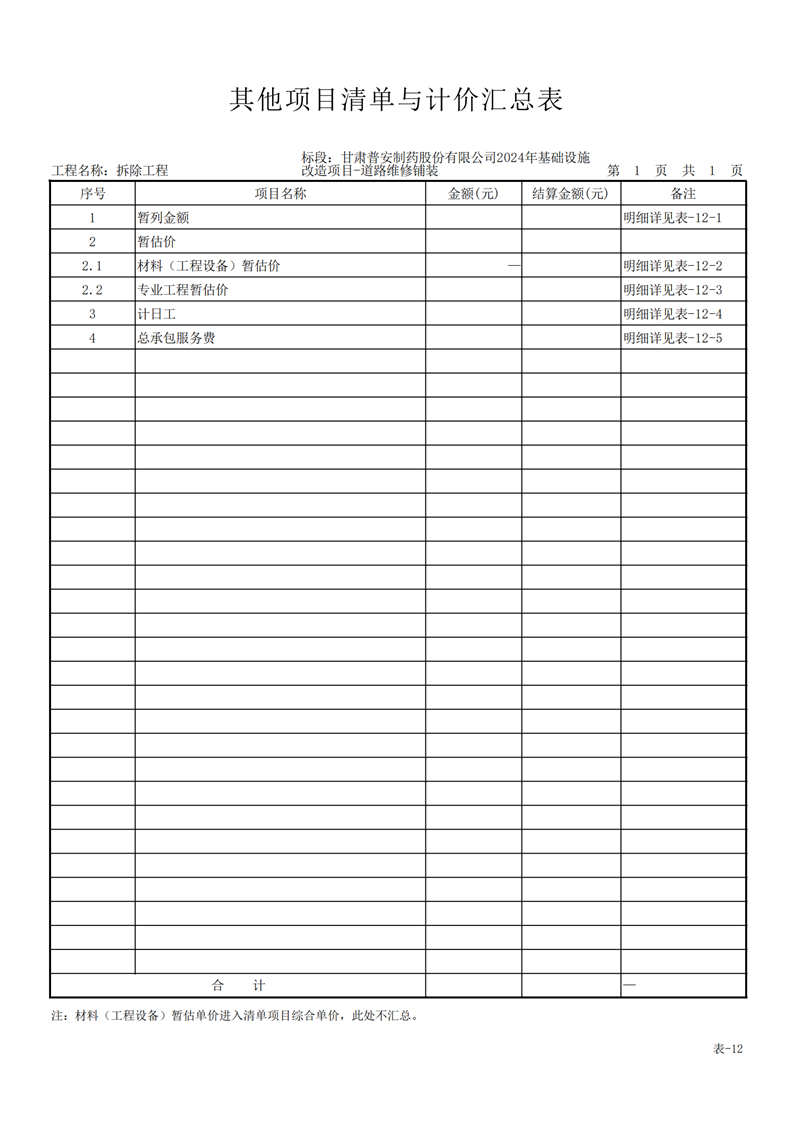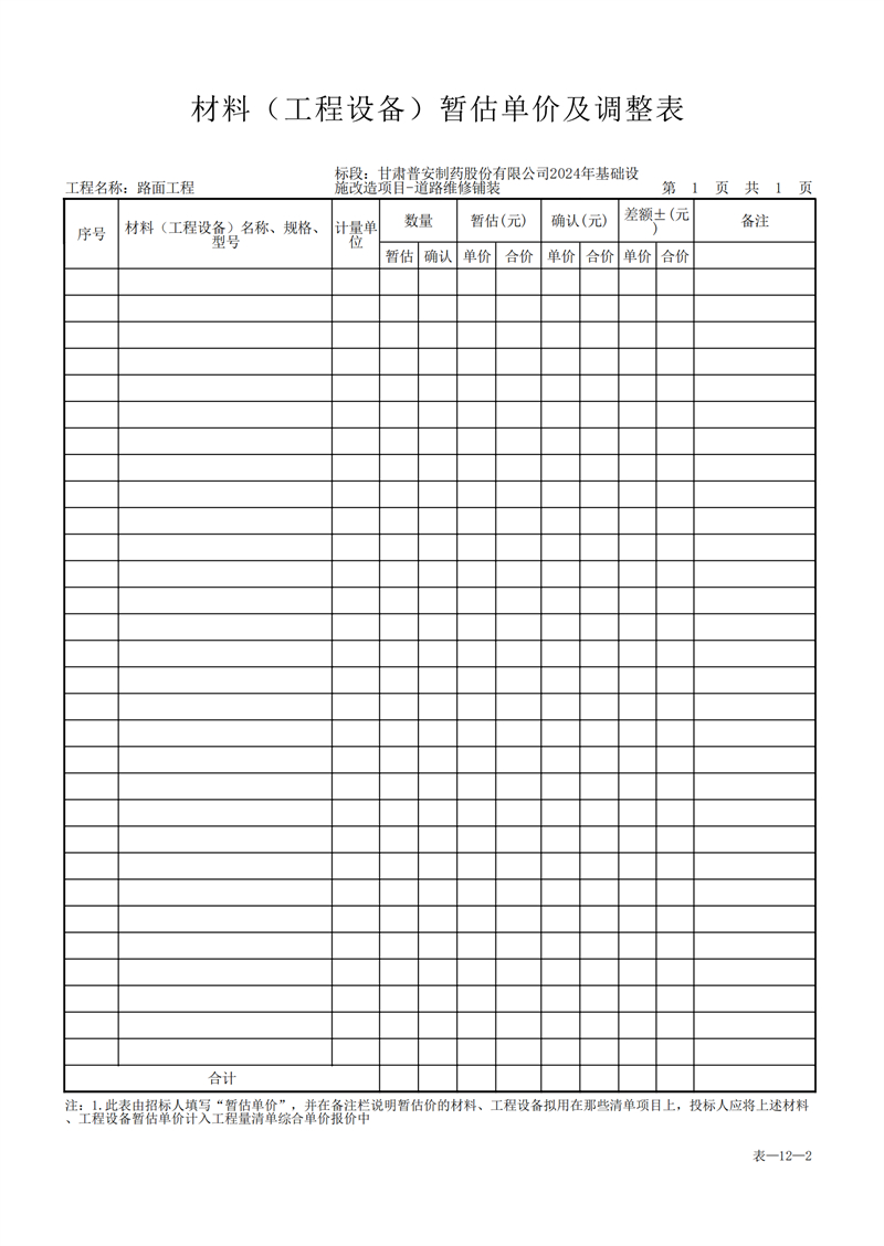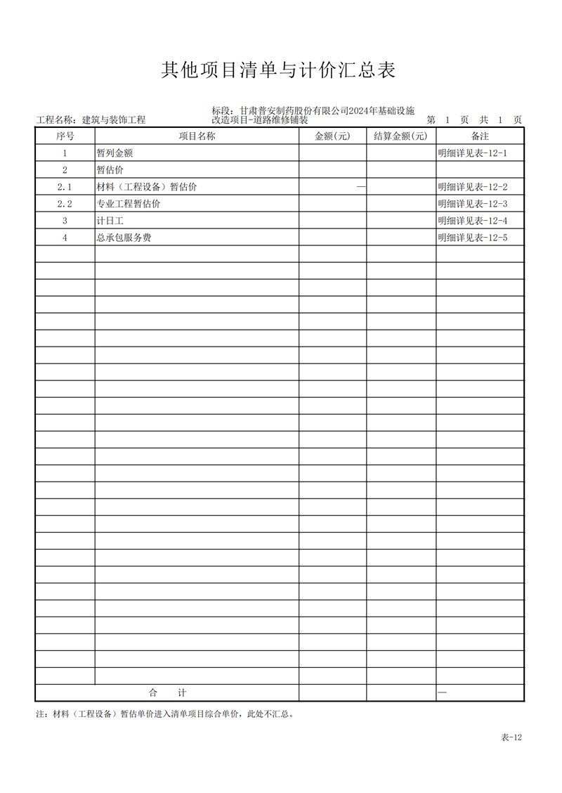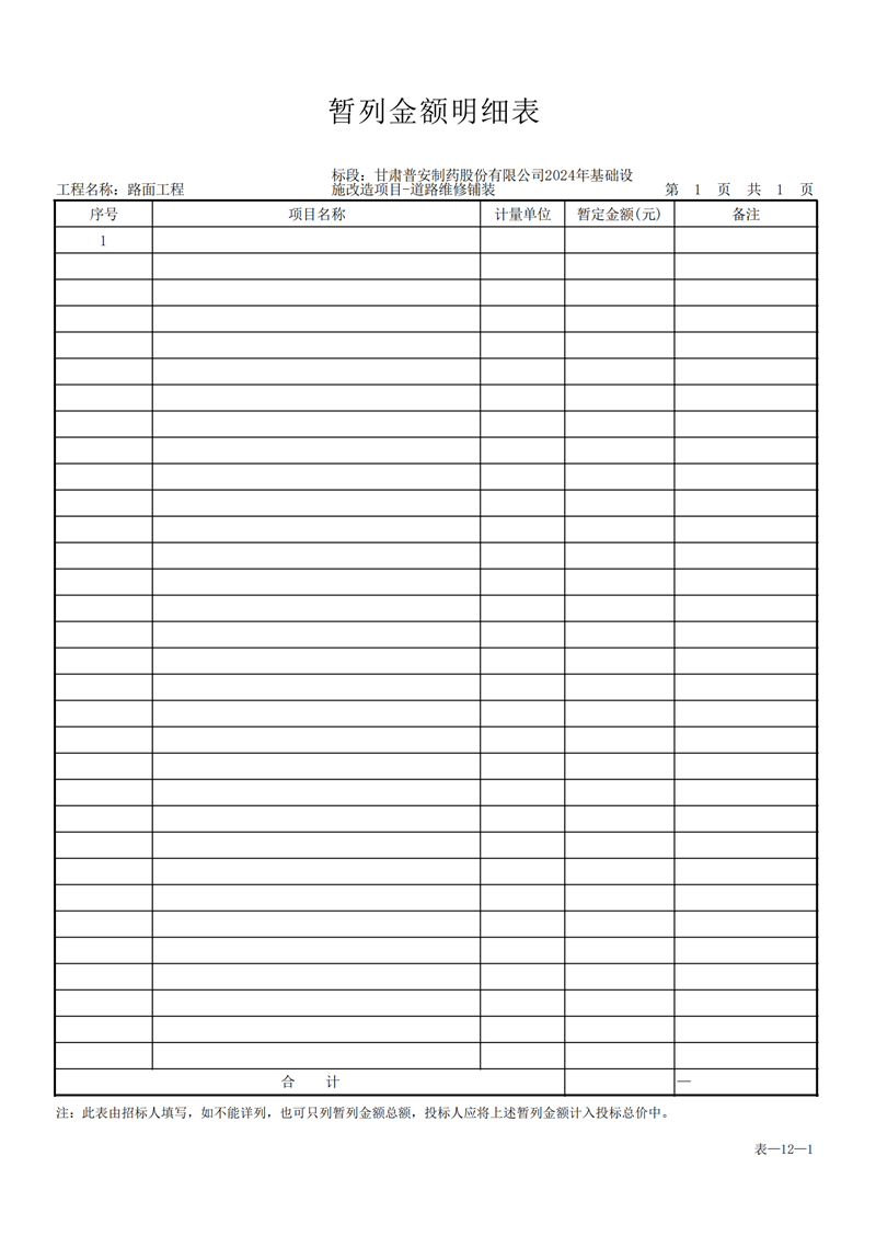 甘肅普安制藥股份有限公司2024年基礎(chǔ)設(shè)施改造項(xiàng)目-道路維修鋪裝工程招標(biāo)公告