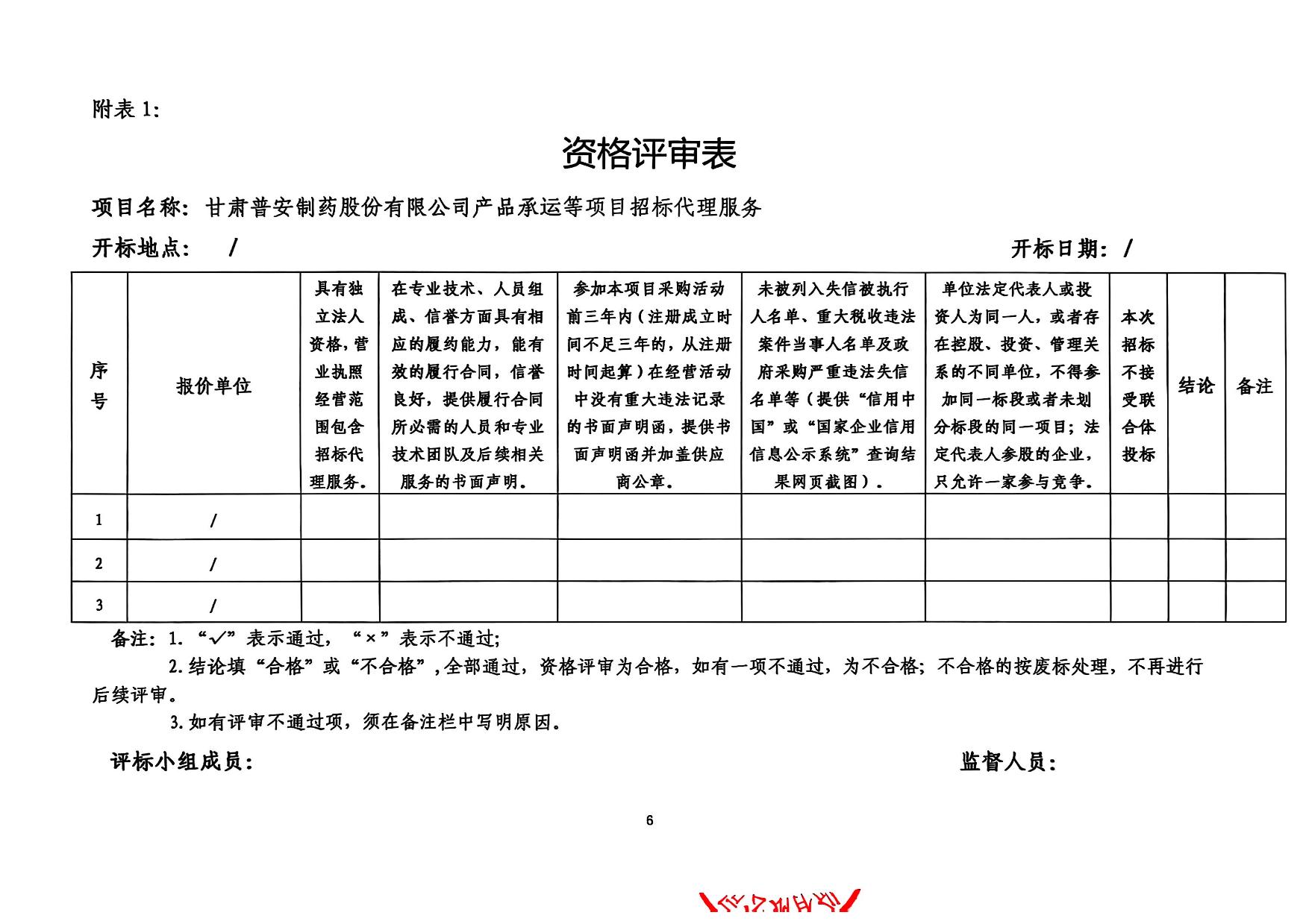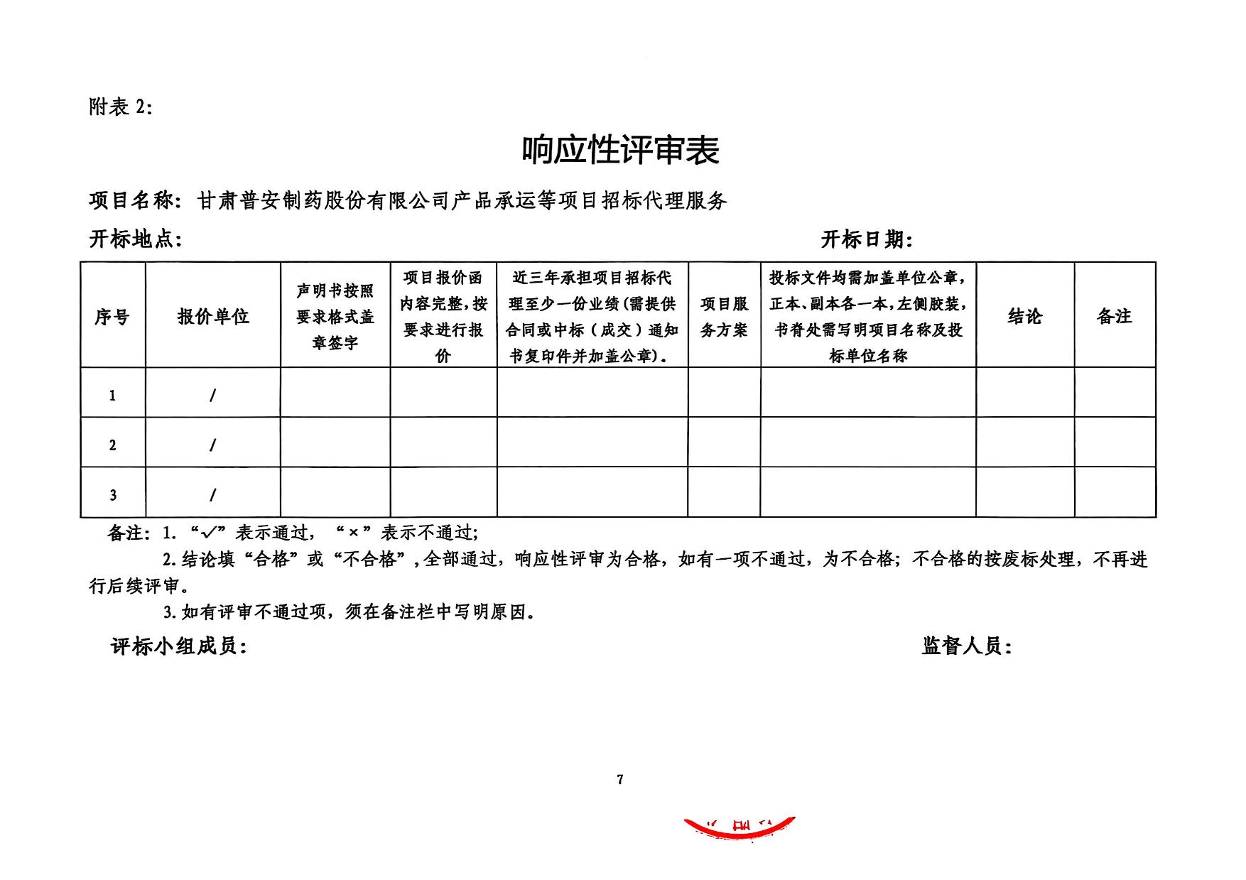 甘肅普安制藥股份有限公司產(chǎn)品承運(yùn)等項(xiàng)目招標(biāo)代理服務(wù)招標(biāo)公告