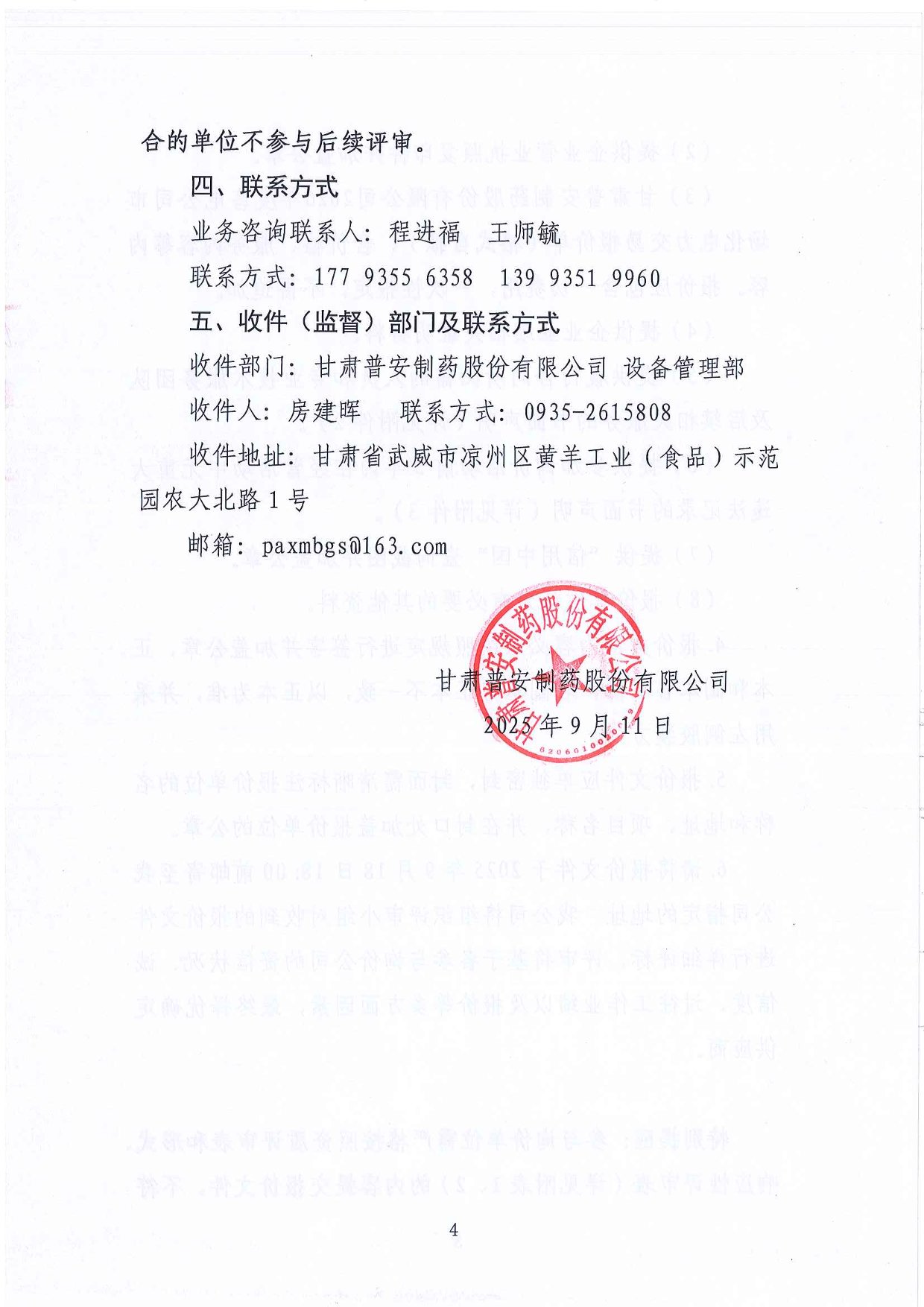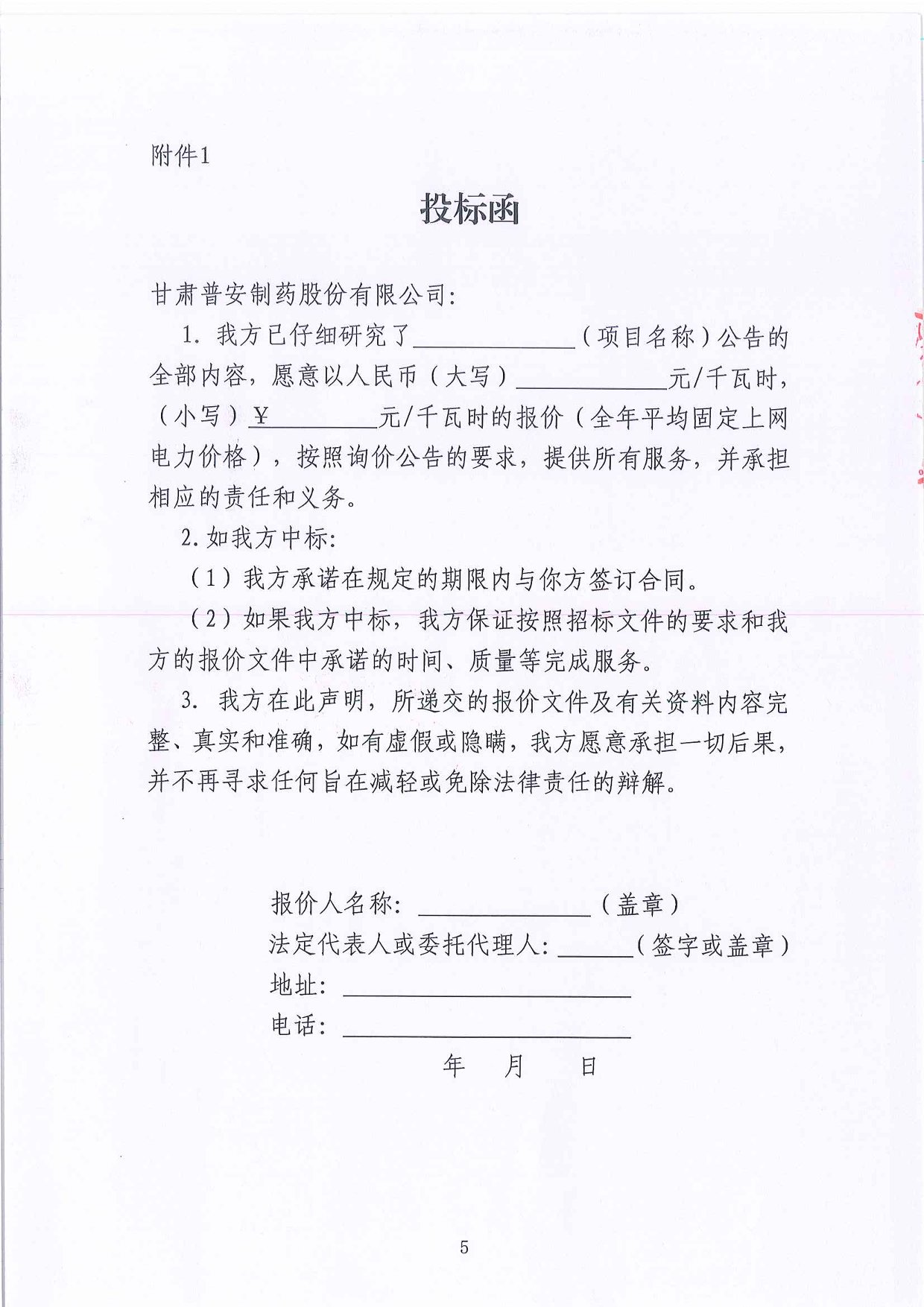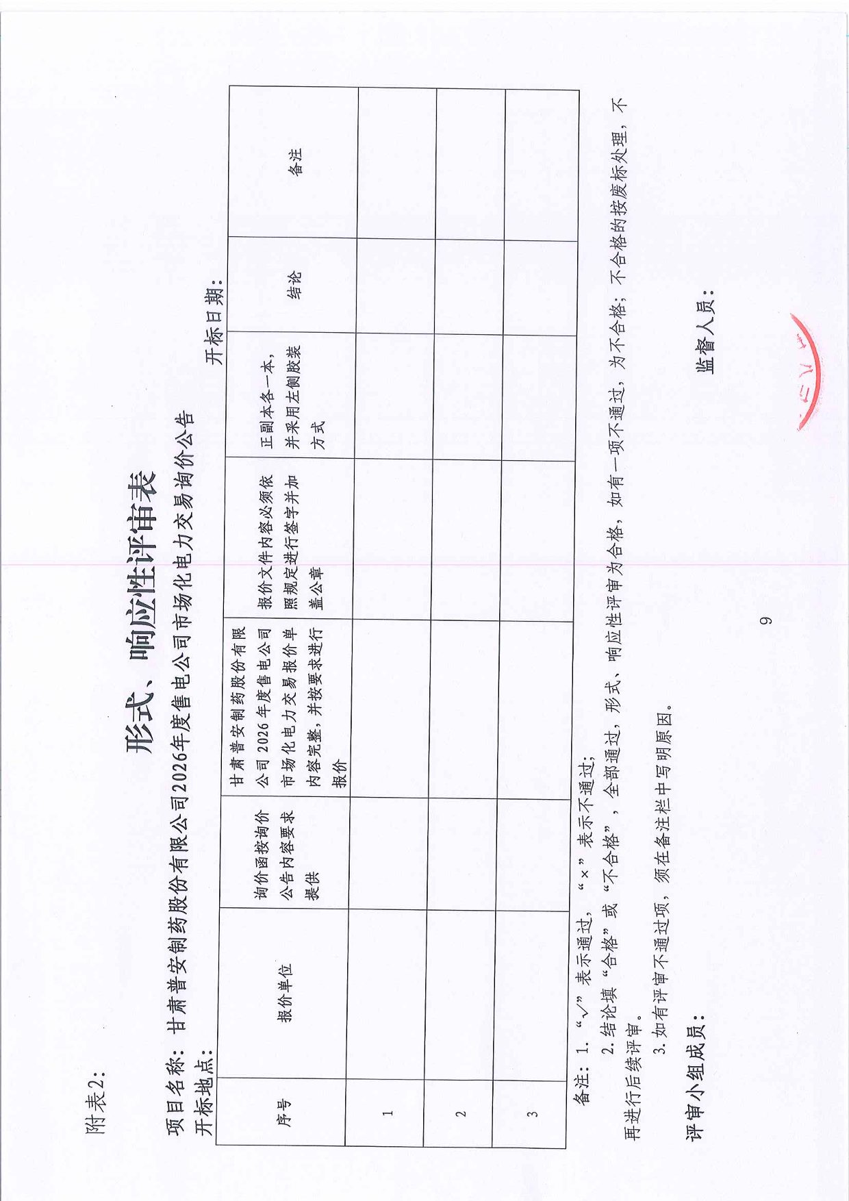 甘肅普安制藥股份有限公司2026年度售電公司市場(chǎng)化電力交易詢價(jià)公告